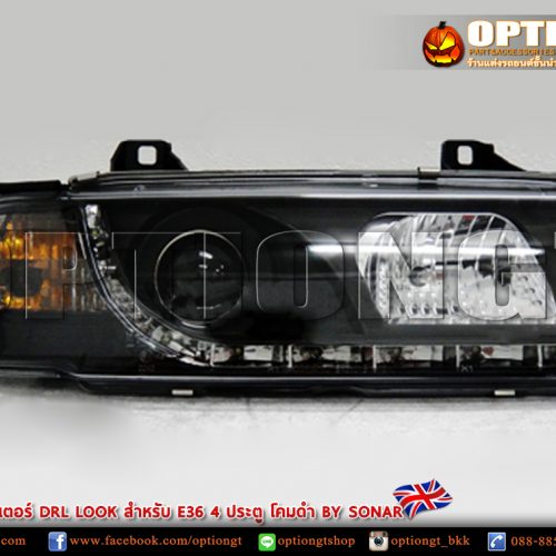 ไฟหน้า BMW E36 4D ทรง Projector DRL Look (ดำ)