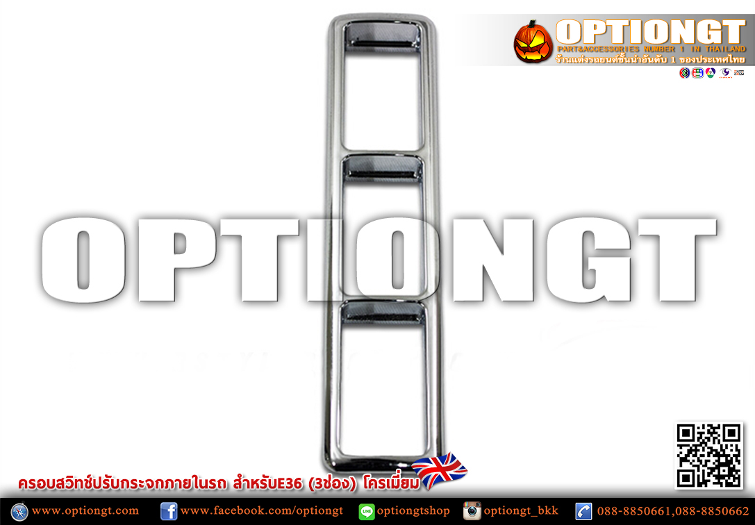 ครอบสวิทช์ปรับกระจกภายในรถโครเมียม BMW E36 (3ช่อง)