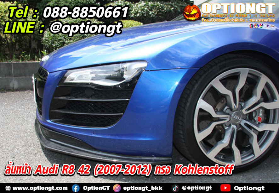 ลิ้นหน้า Audi R8 (42 (2007-2012)) ทรง Kohlenstoff