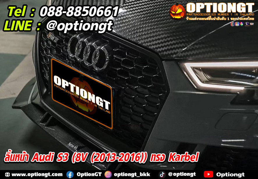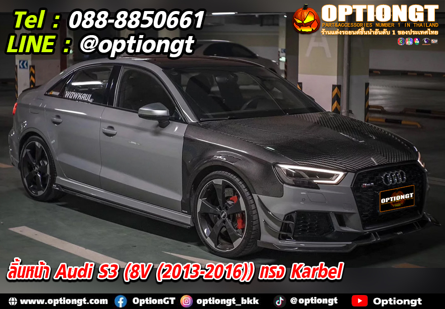 ลิ้นหน้า Audi S3 (8V (2013-2016)) ทรง Karbel v.2