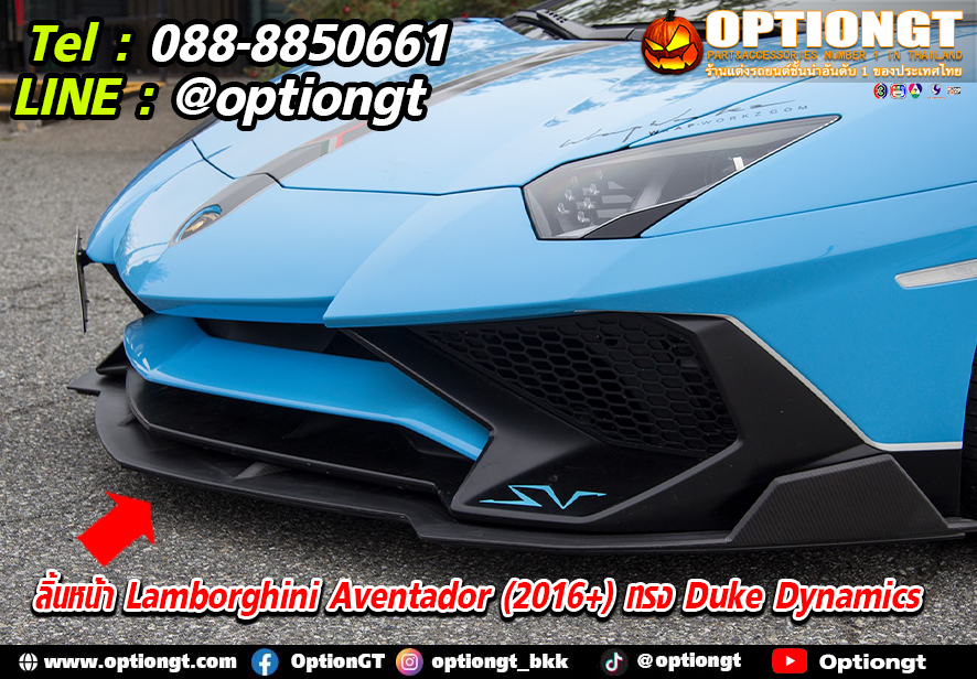 ลิ้นหน้า Lamborghini Aventador (2016+) ทรง Duke Dynamics