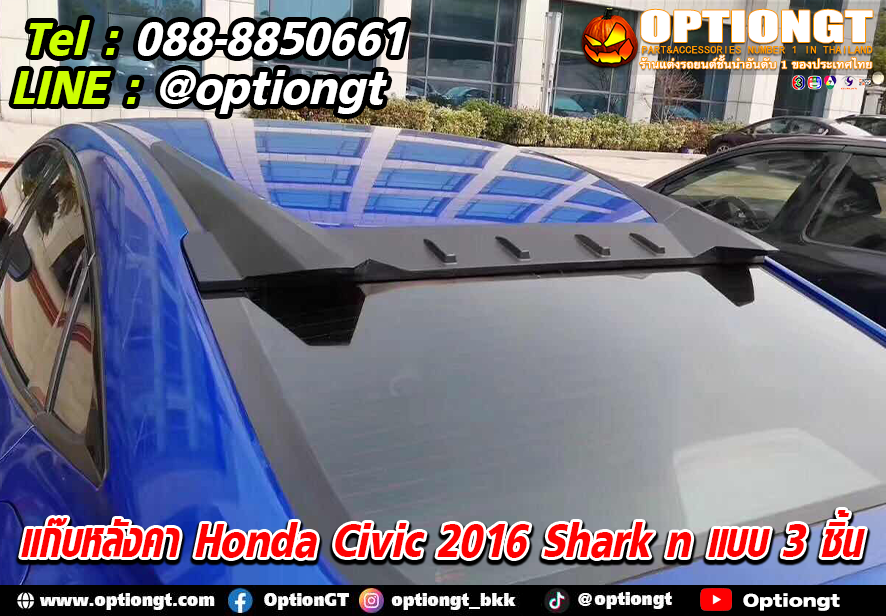 แก๊บหลังคา Honda Civic 2016 Shark fin แบบ 3 ชิ้น