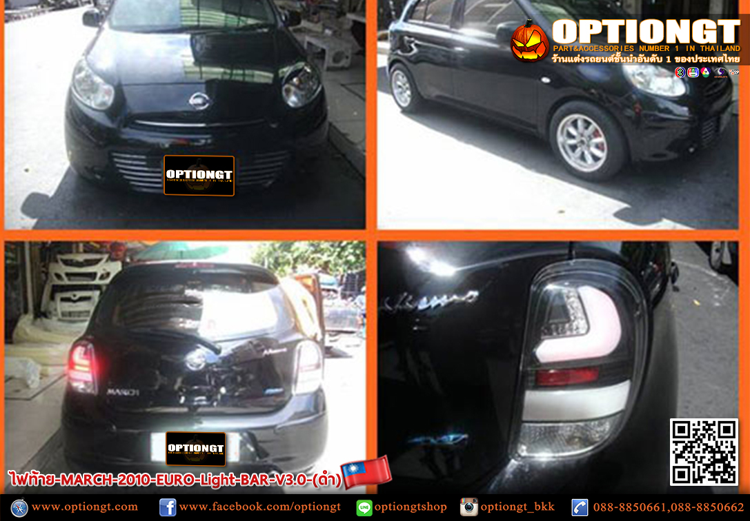 ไฟท้าย NISSAN MARCH ทรง EURO LIGHT BAR V3.0 (สีดำ)