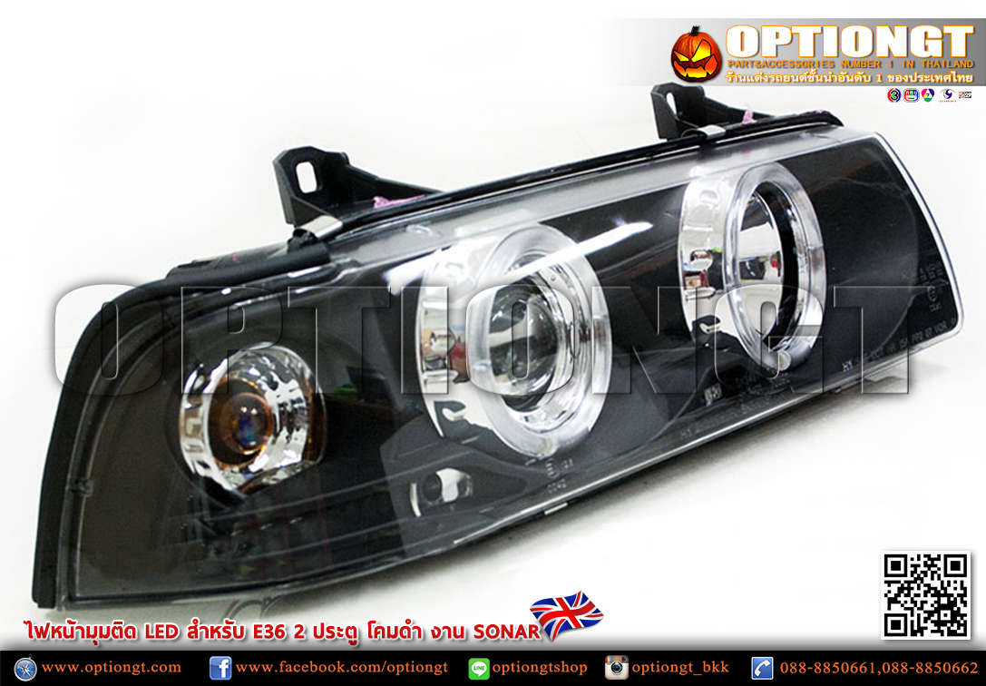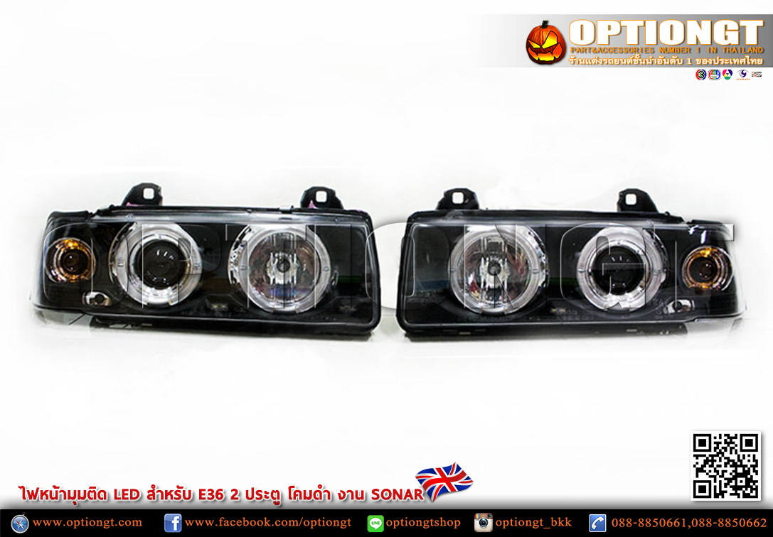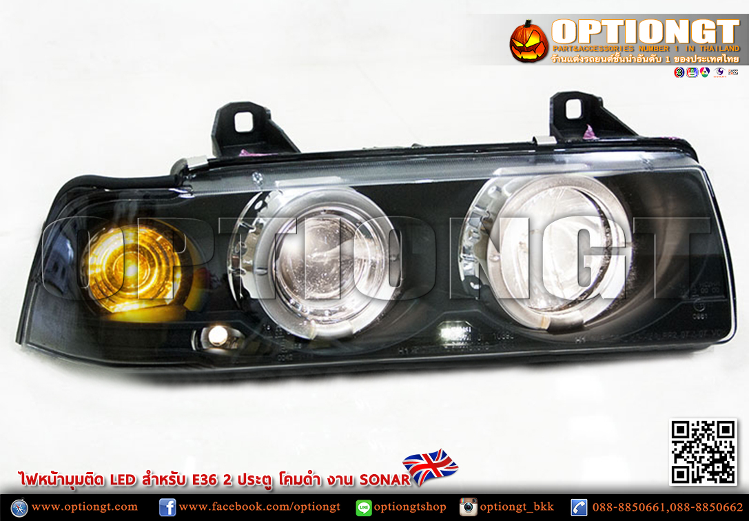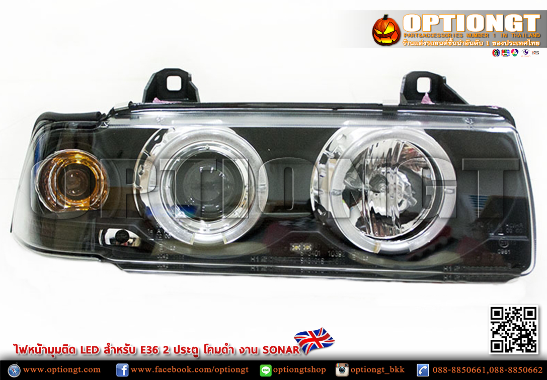 ไฟหน้า BMW E36 2D ทรง LED Sonar (ดำ)