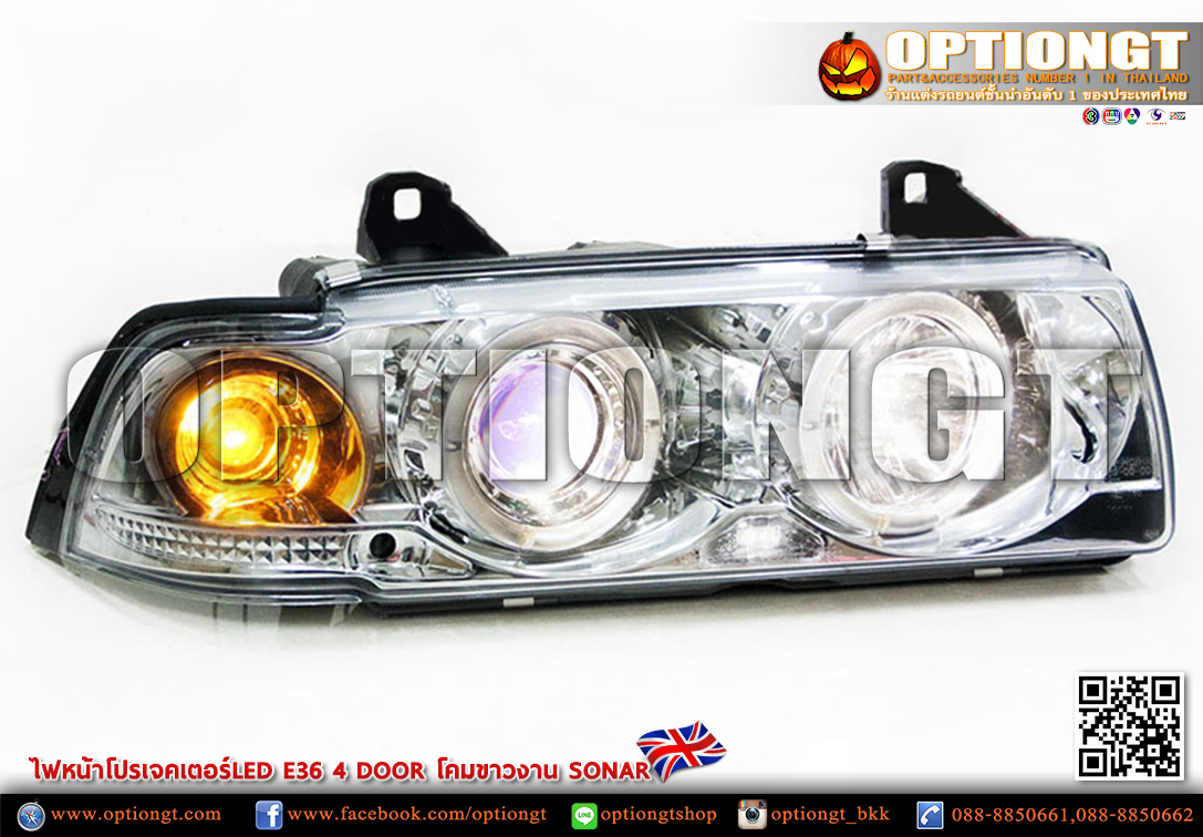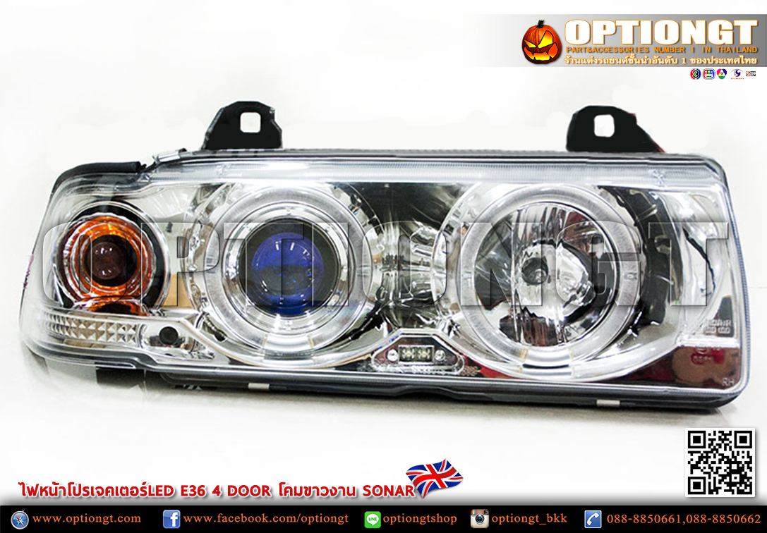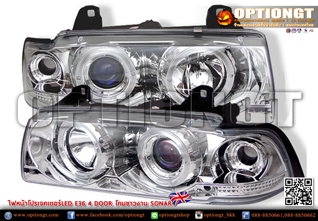 ไฟหน้า BMW E36 4D ทรง Projector LED Sonar (ขาว)