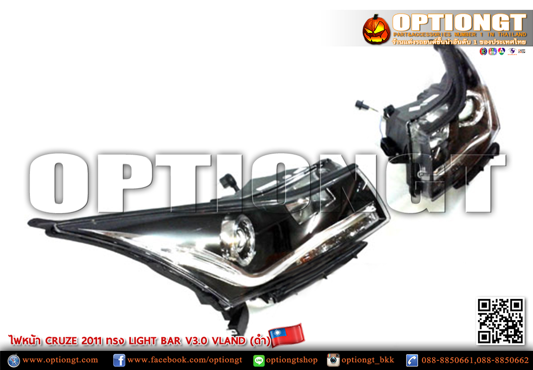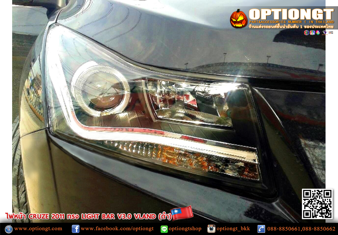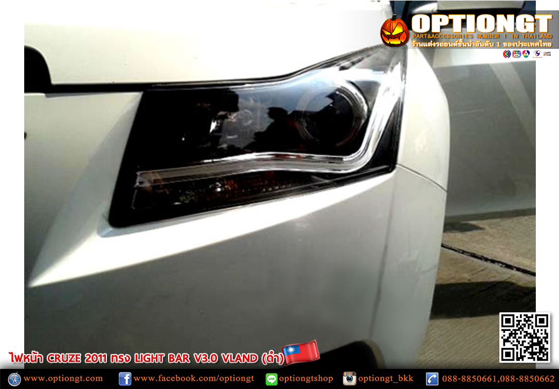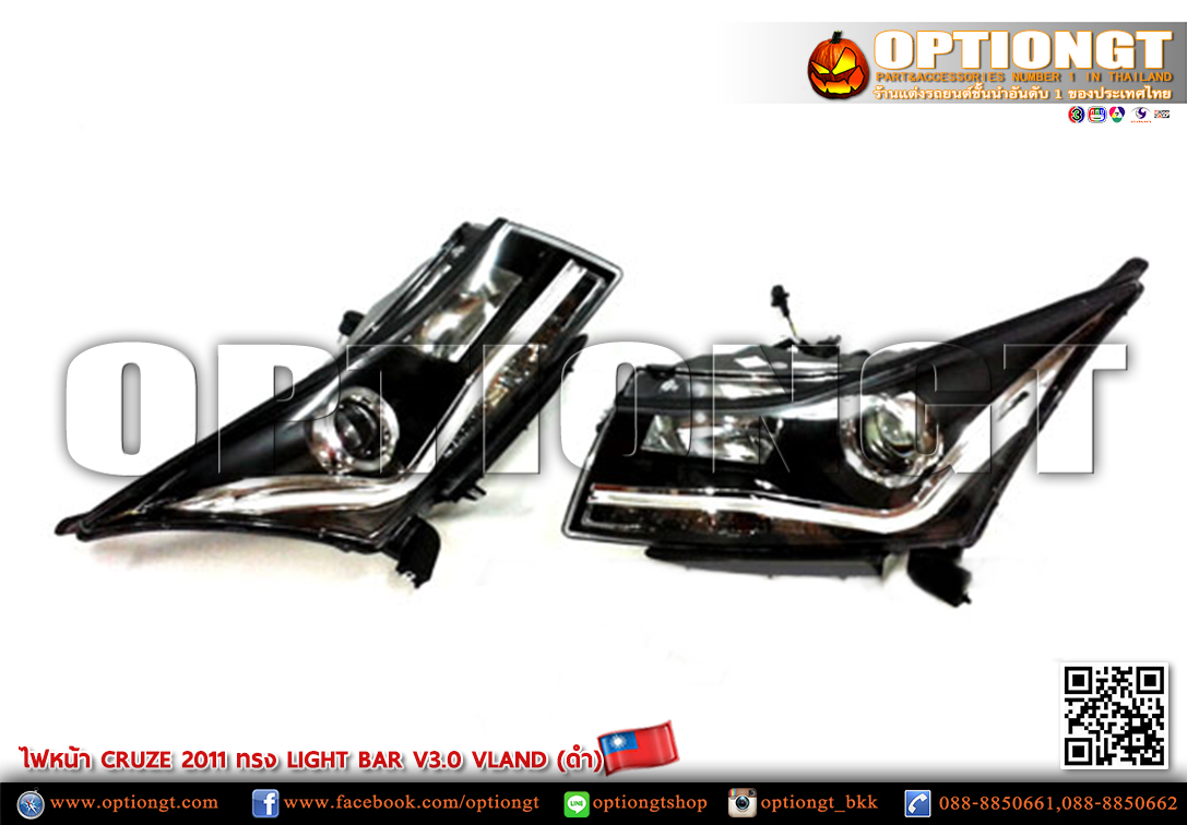 ไฟหน้า CHEVROLET CRUZE ทรง LIGHT BAR V3 (ดำ)