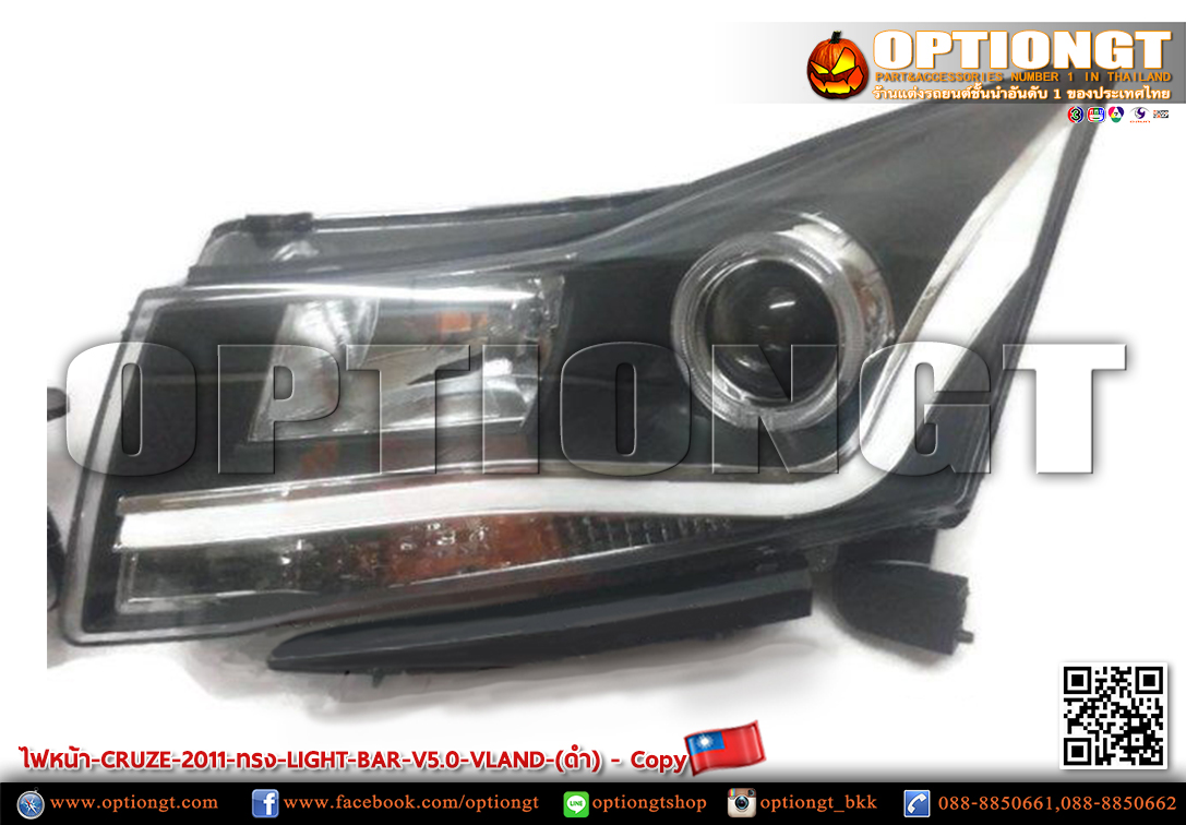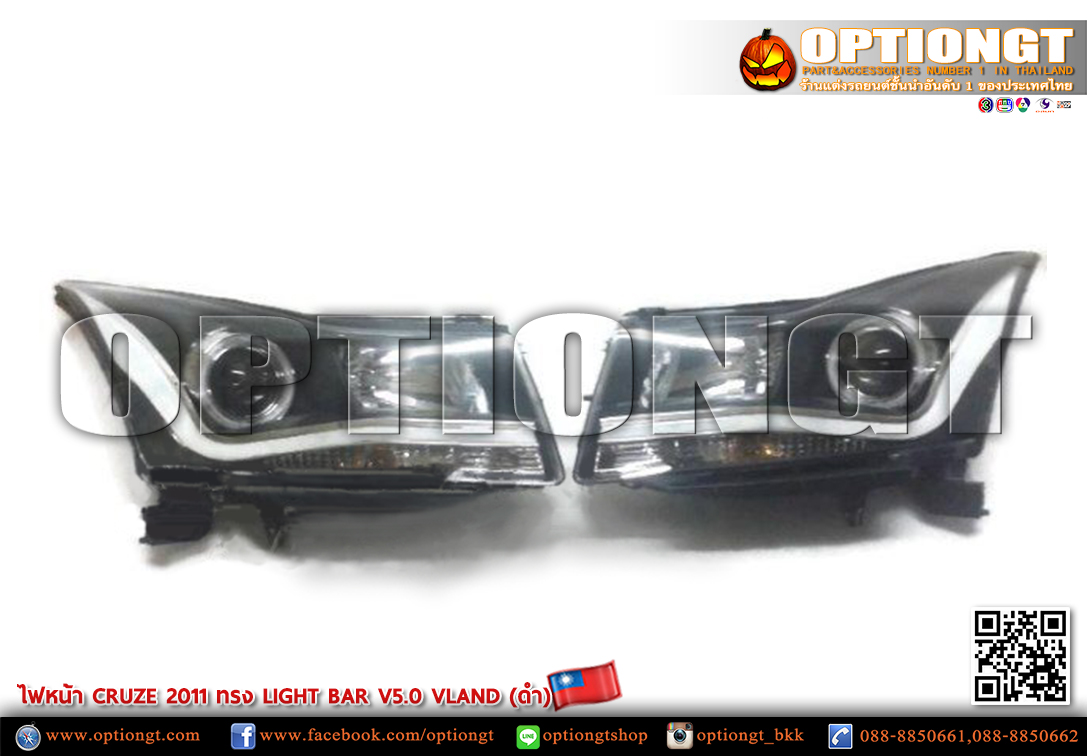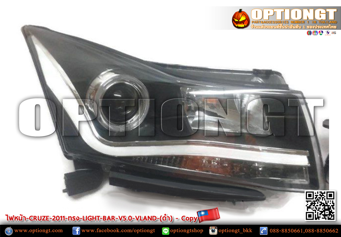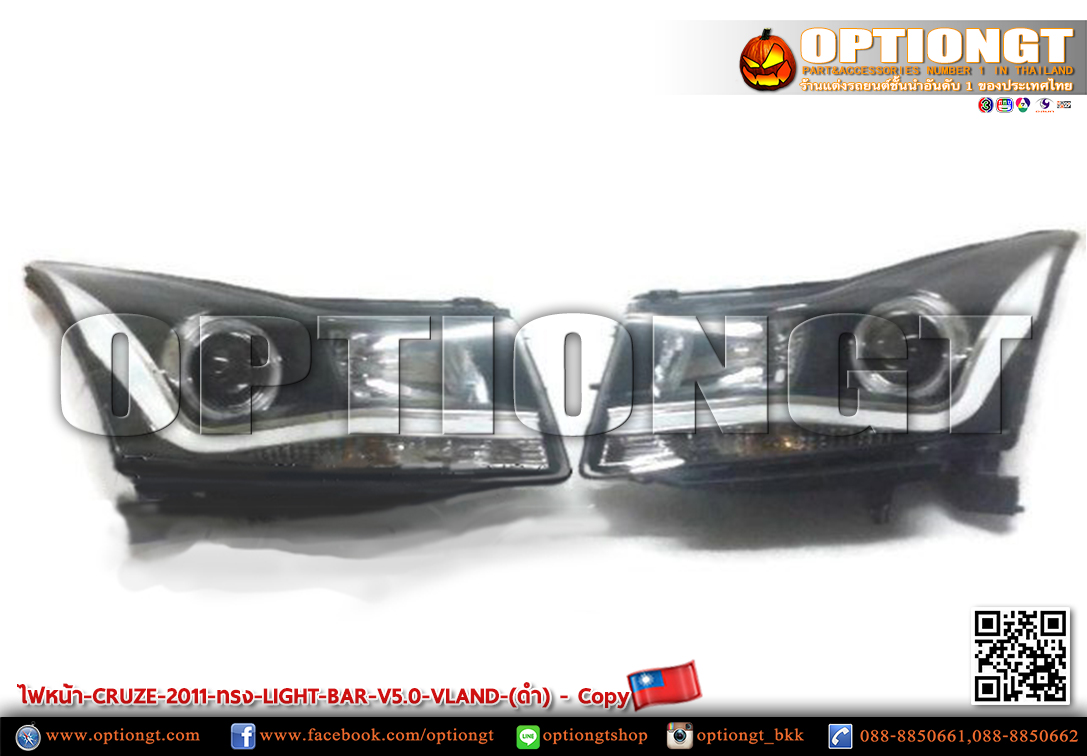 ไฟหน้า CHEVROLET CRUZE ทรง LIGHT BAR V5 (ดำ)