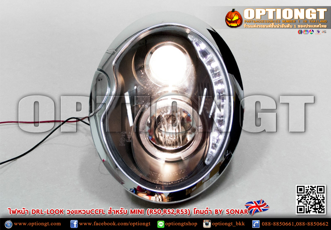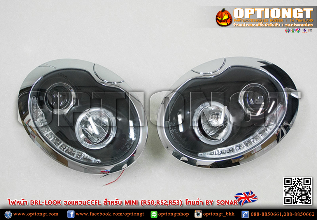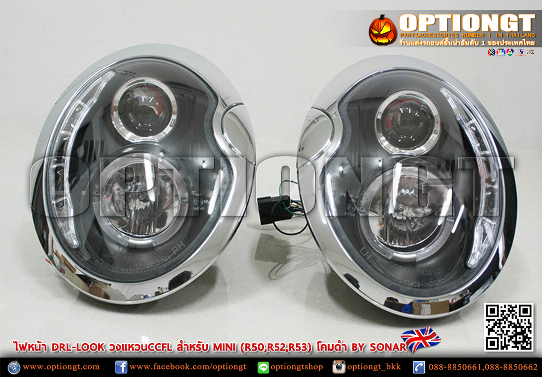 ไฟหน้า Mini Gen1 (R50,R52,R53) ทรง DRL Look Sonar (ดำ)