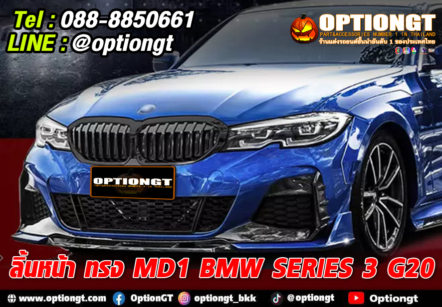 BMW Series3 G20 ลิ้นหน้าคาร์บอนทรง MD1