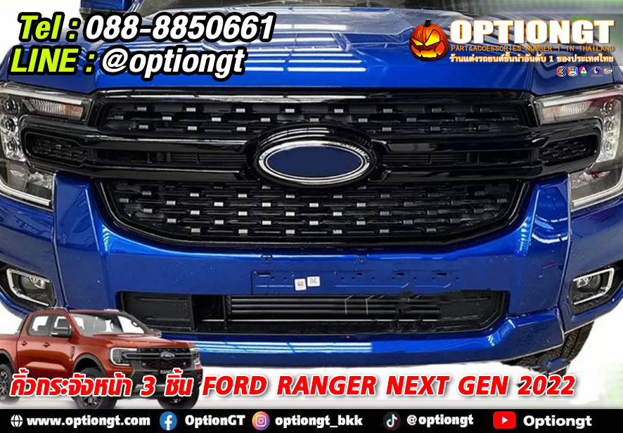 Ford Ranger 2022 คิ้วกระจังหน้า3ชิ้น