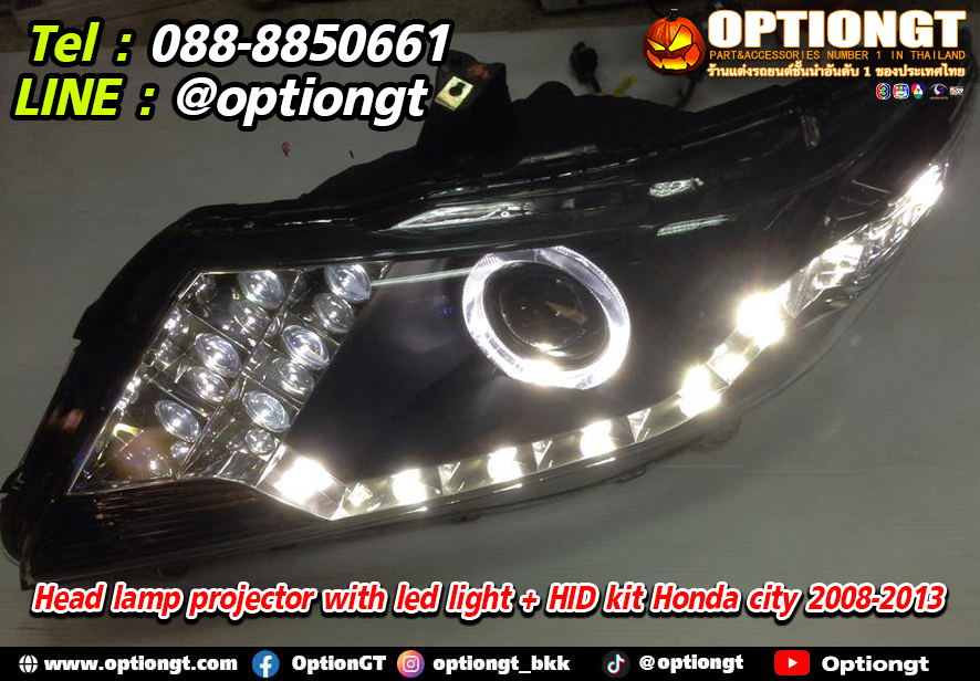 Head lamp projector with led light + HID kit Honda city 2008-2013