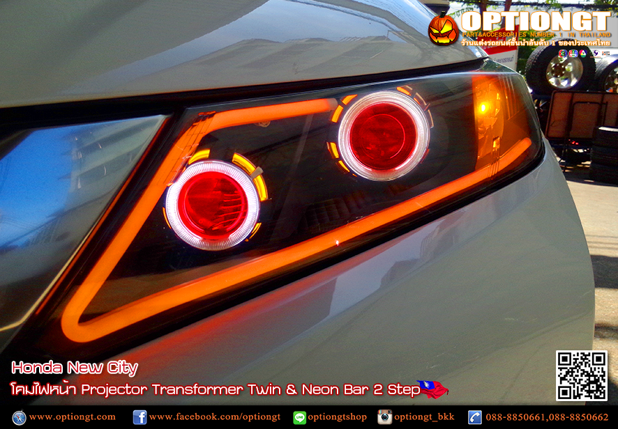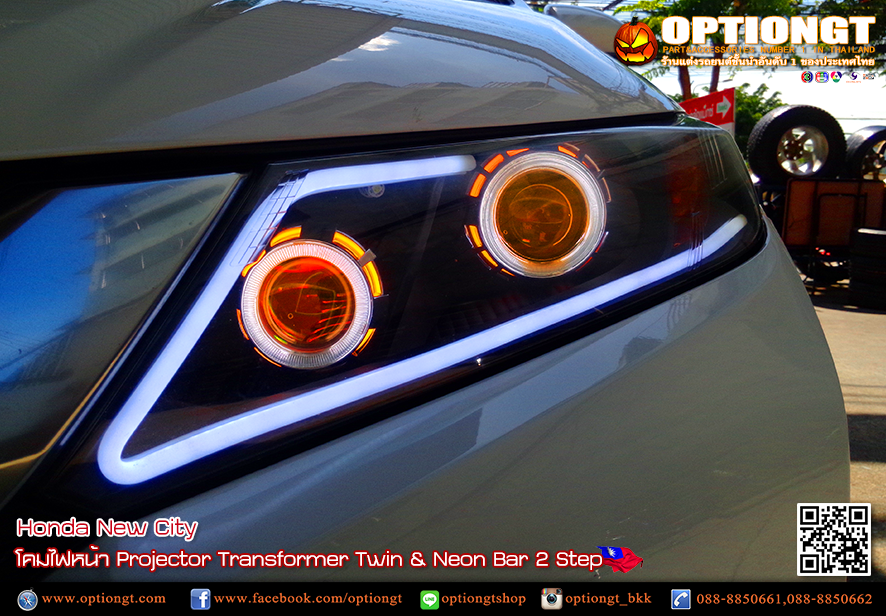 Honda City โคมไฟหน้า Projector Transformer Twin & Neon Bar 2 Step