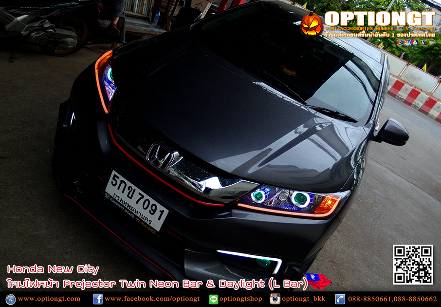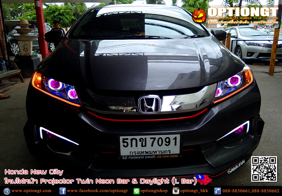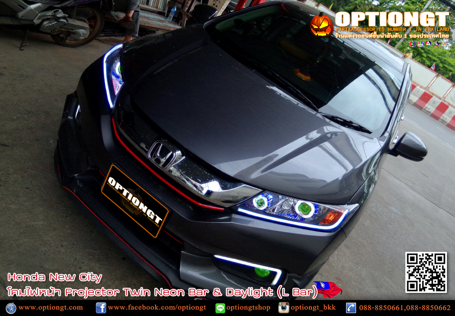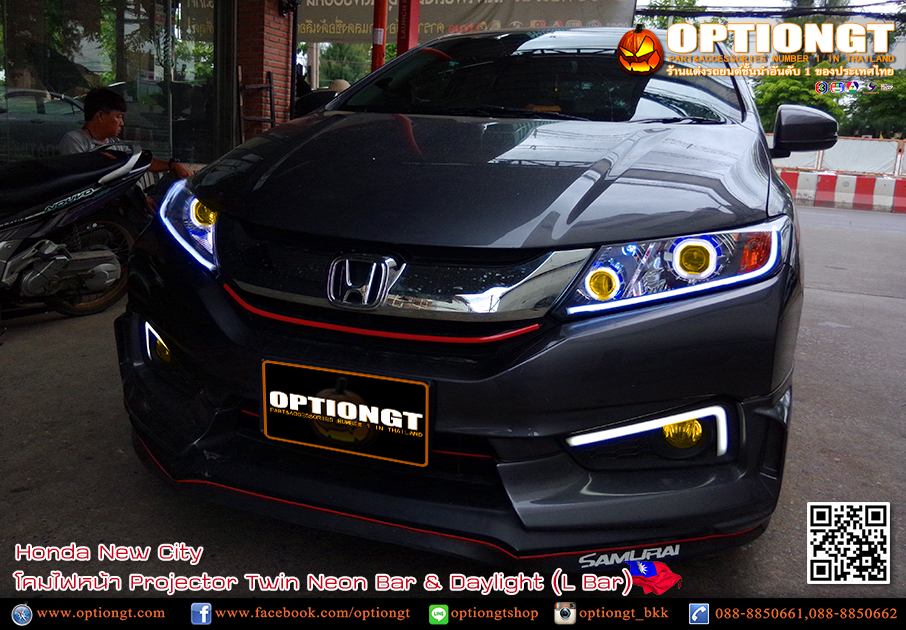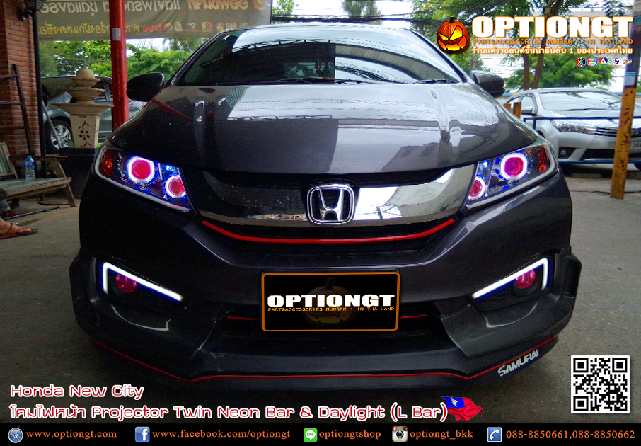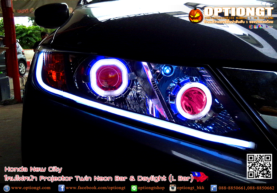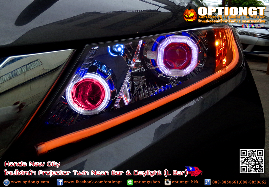 Honda City โคมไฟหน้า Projector Twin Neon Bar & Daylight (L Bar)