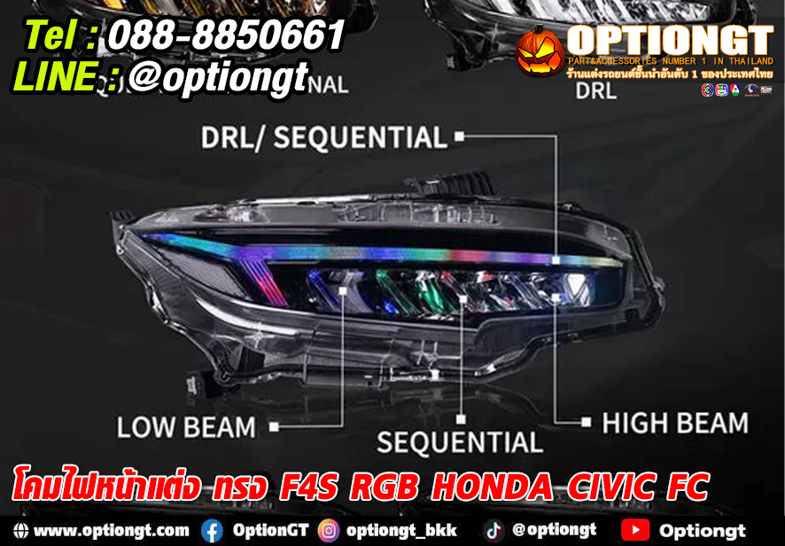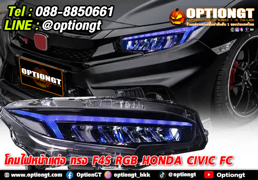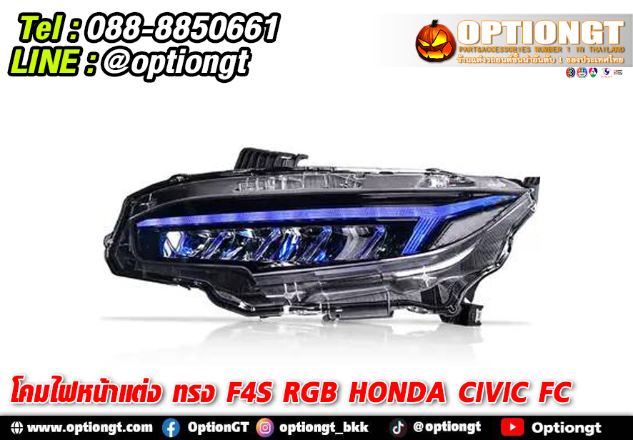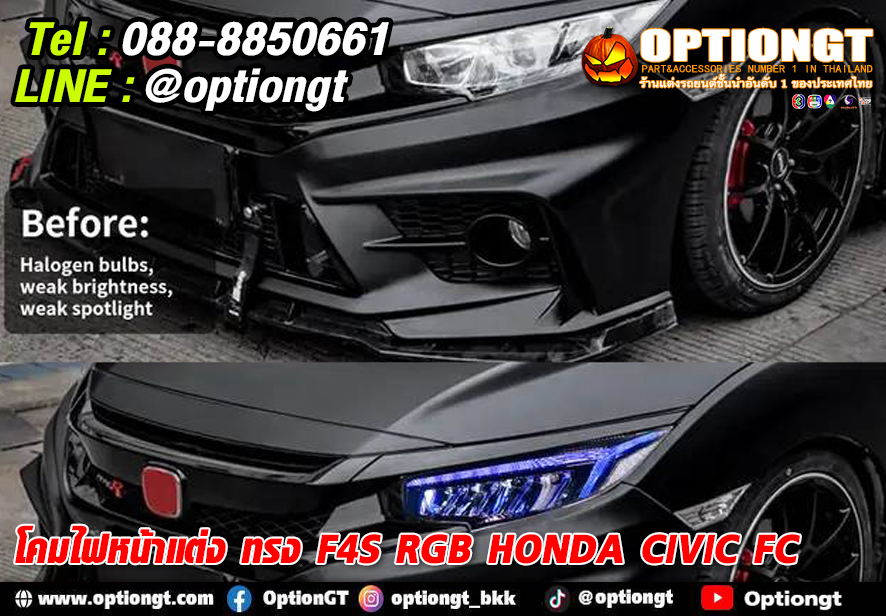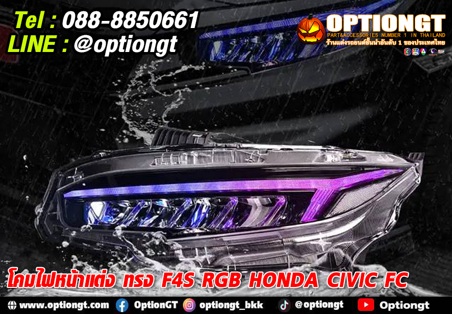 Honda Civic FC ไฟหน้าแต่งทรง F4S RGB
