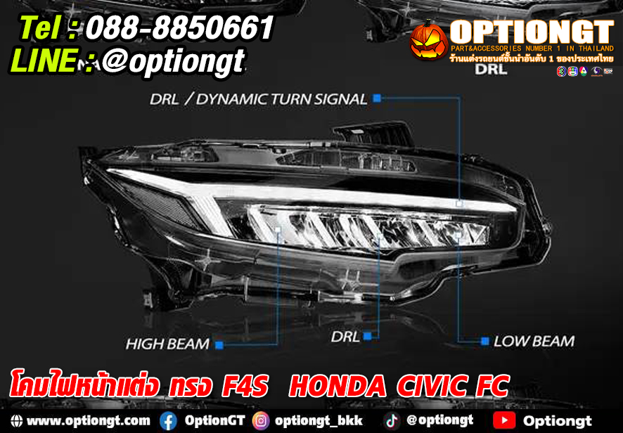 Honda Civic FC ไฟหน้าแต่งทรง F4S