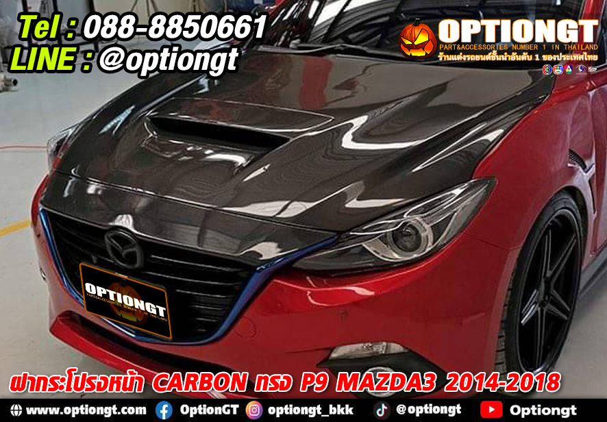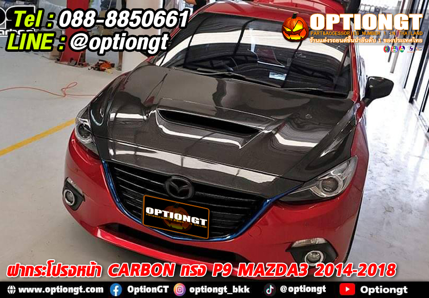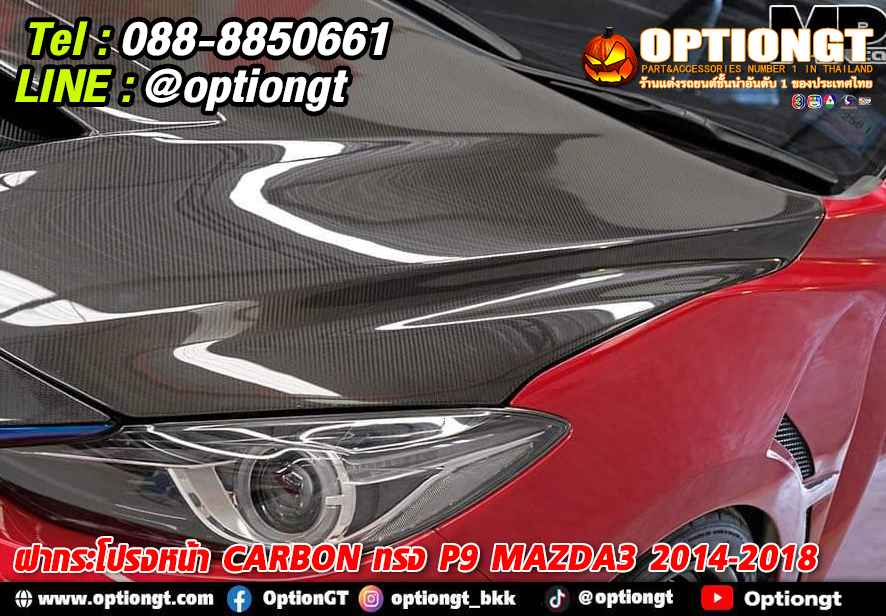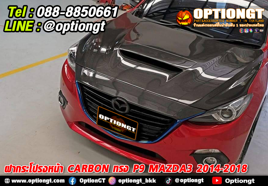 Mazda3 2014-2018 ฝากระโปรงหน้าคาร์บอน P9