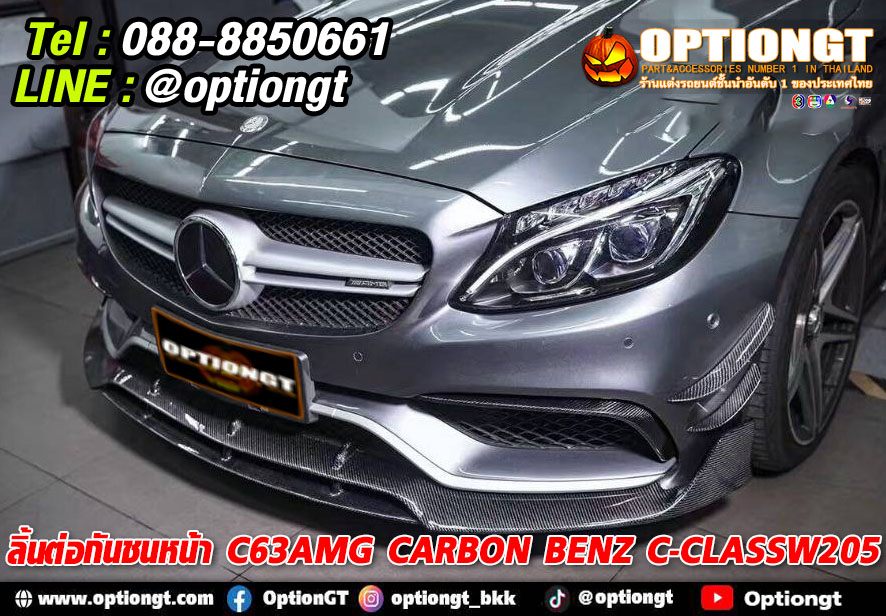 Mercedes Benz C-Class W205 ลิ้นหน้าคาร์บอน C63 AMG