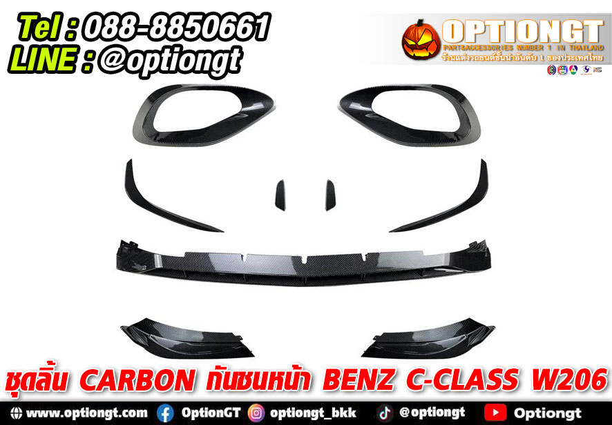 Mercedes Benz C-Class W206 ชุดลิ้นกันชนหน้า Carbon