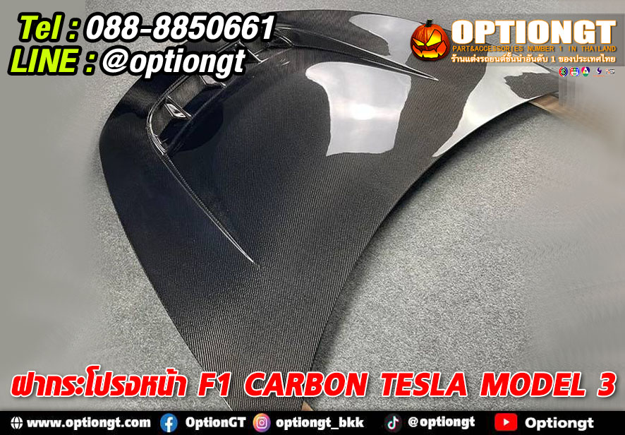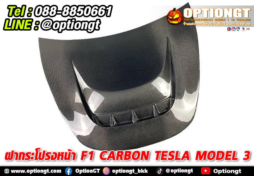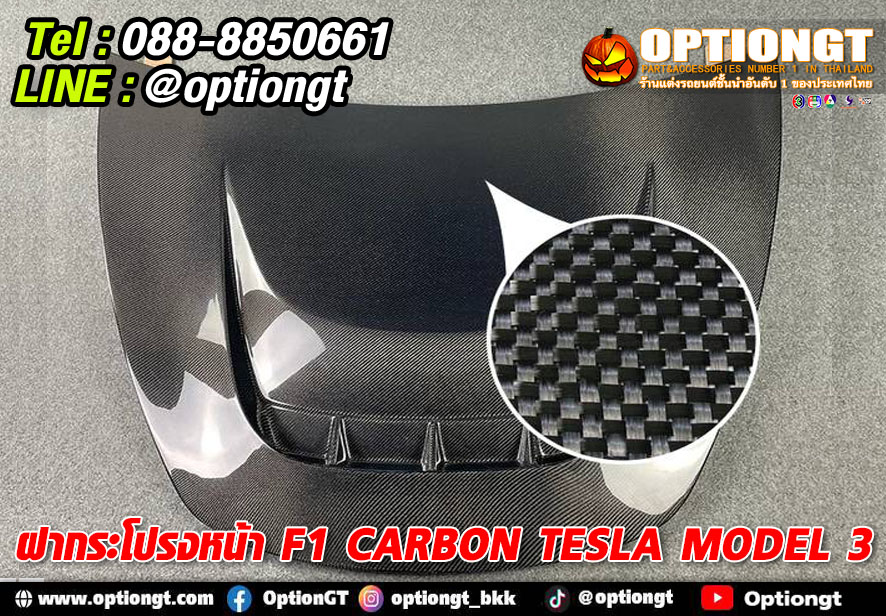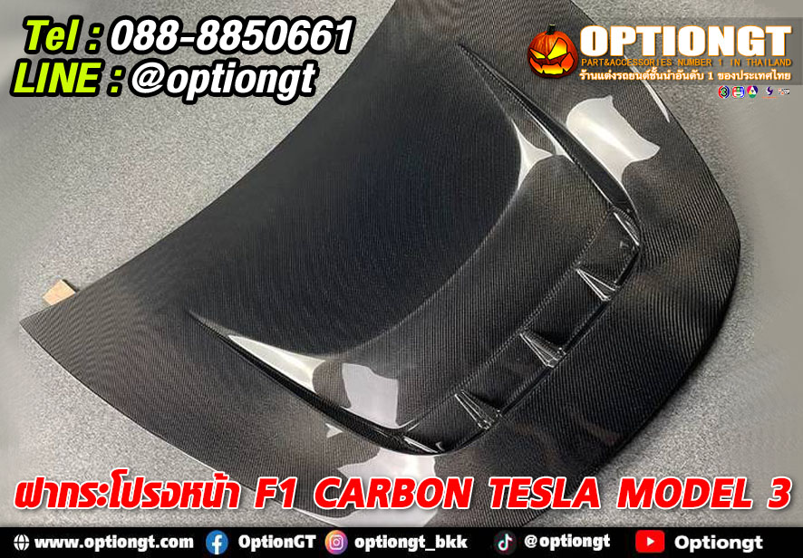 Tesla Model3 ชุดฝากระโปรงหน้า F1 Carbon