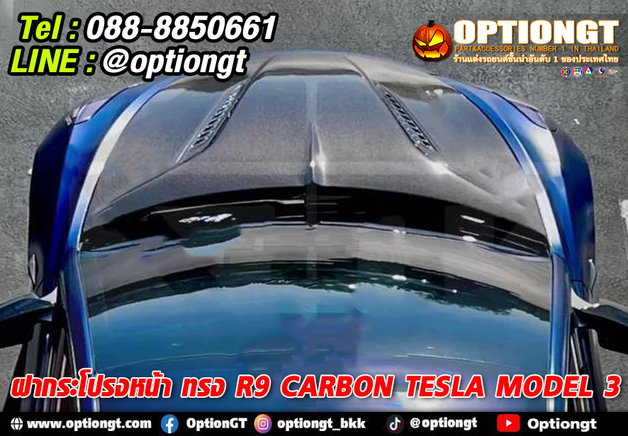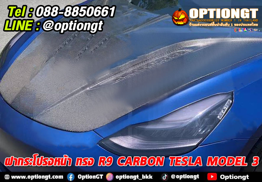 Tesla Model3 ชุดฝากระโปรงหน้า R9 Carbon