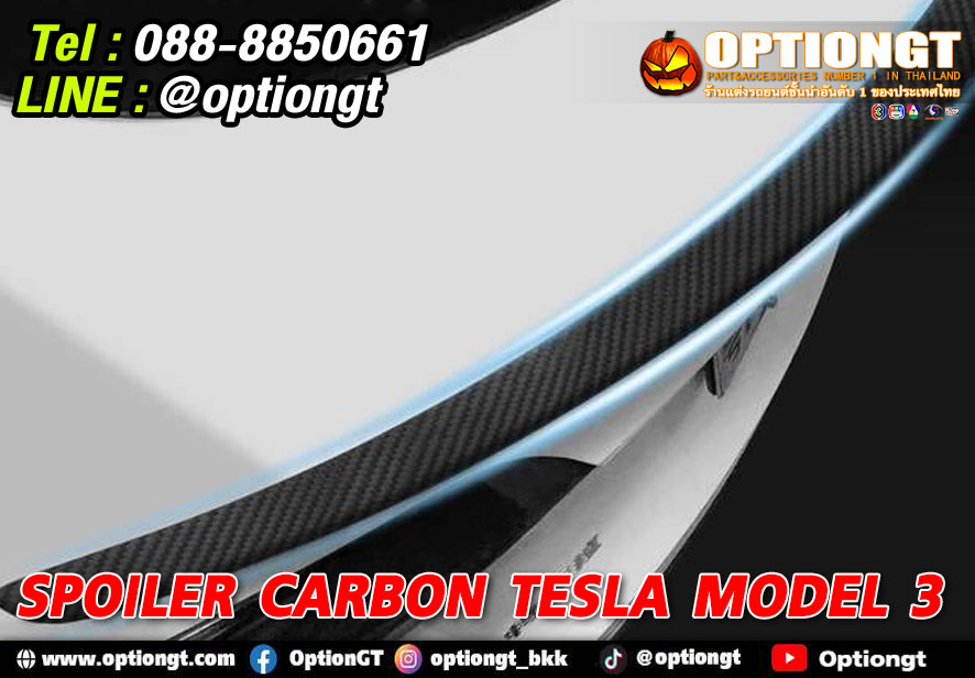 Tesla Model3 สปอยเลอร์หลังคาร์บอน
