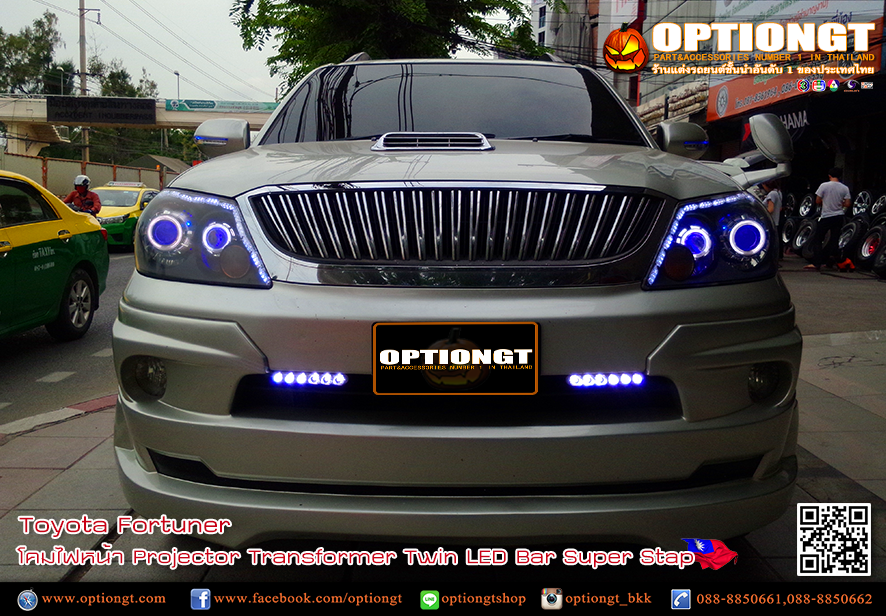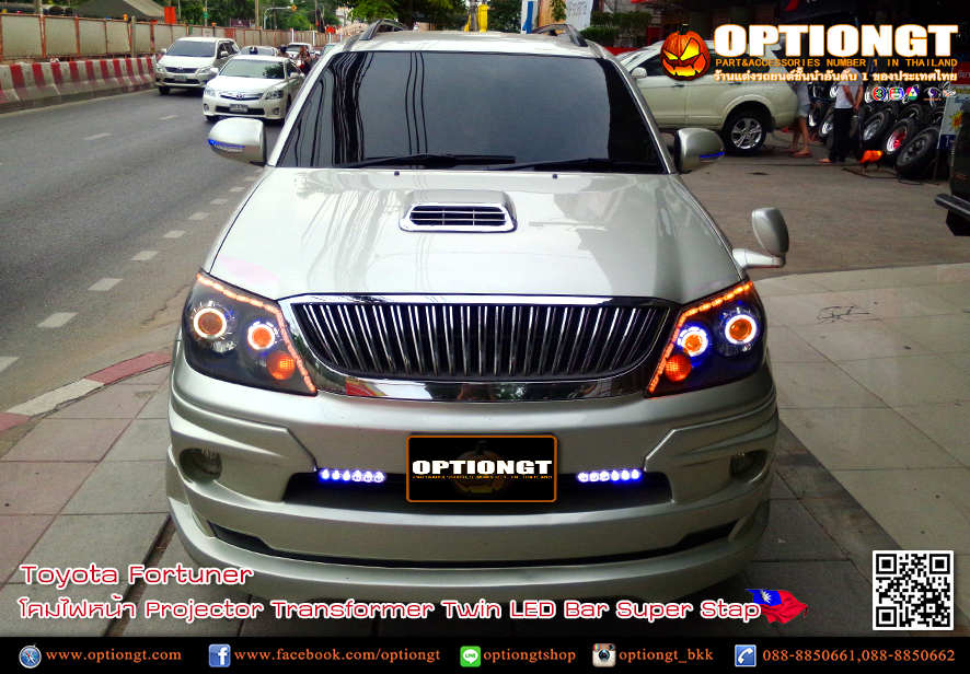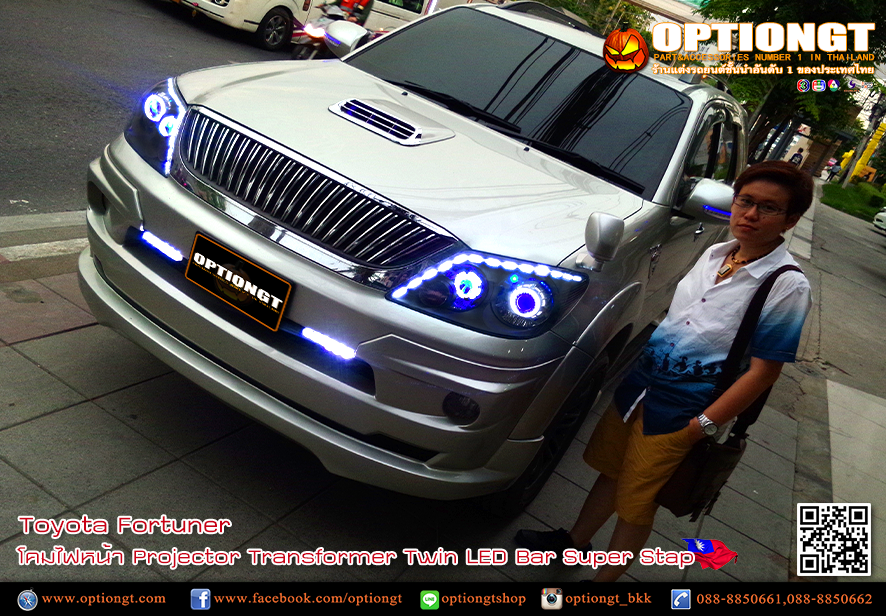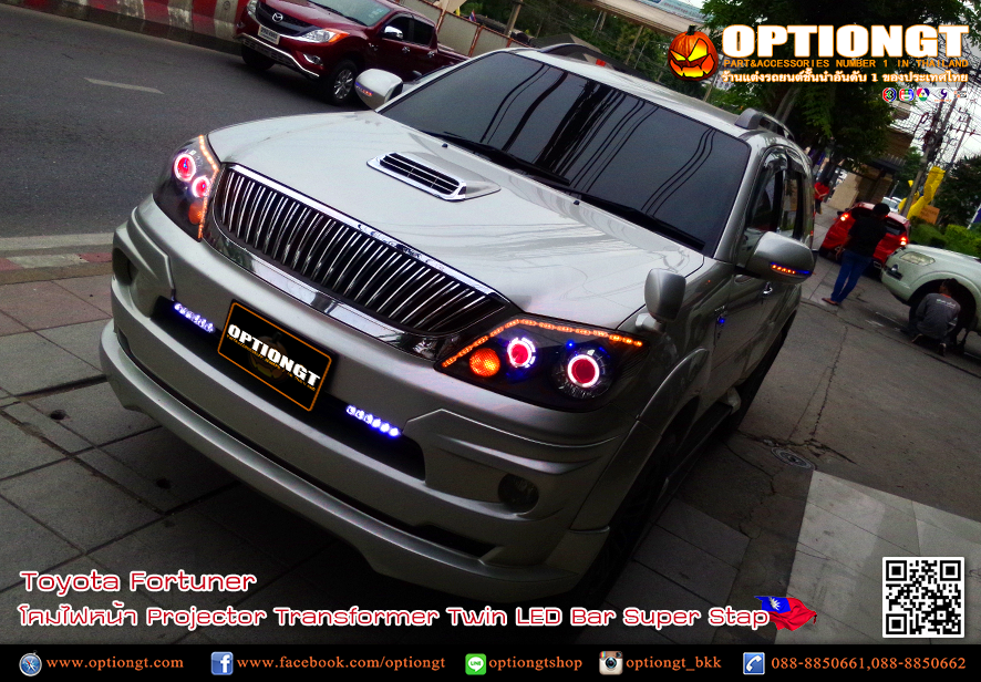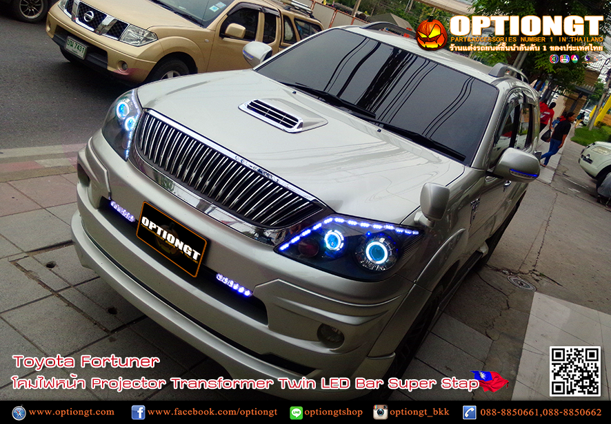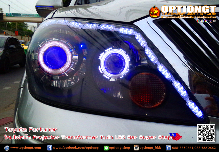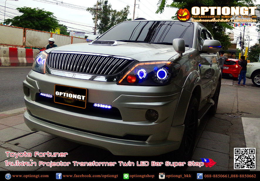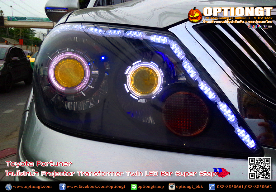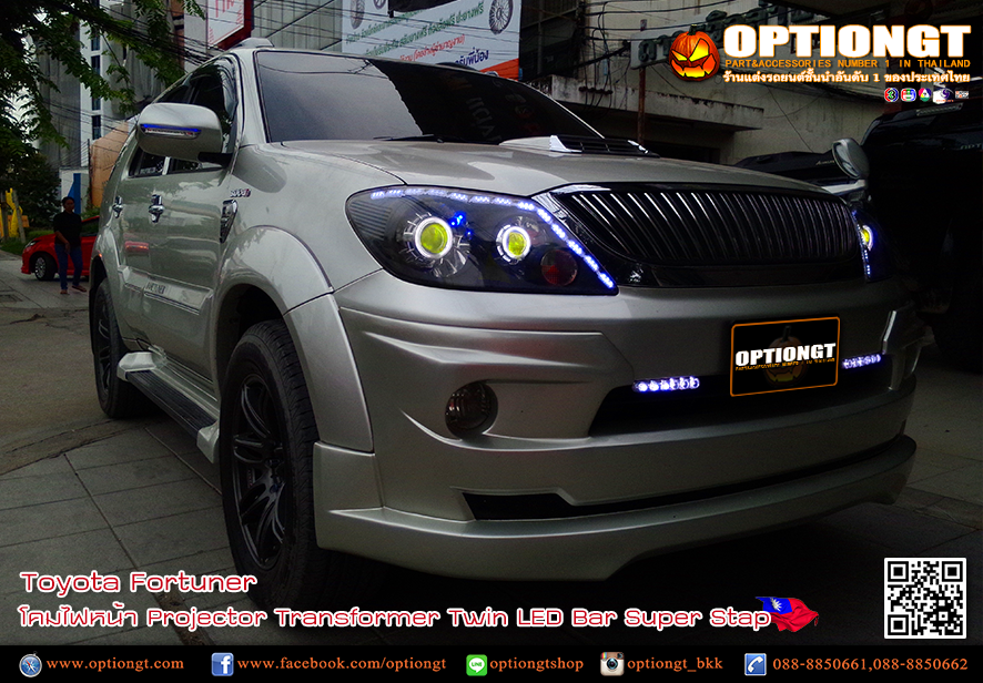 Toyota Fortuner โคมไฟหน้า Projector Transformer Twin LED Bar Super Step