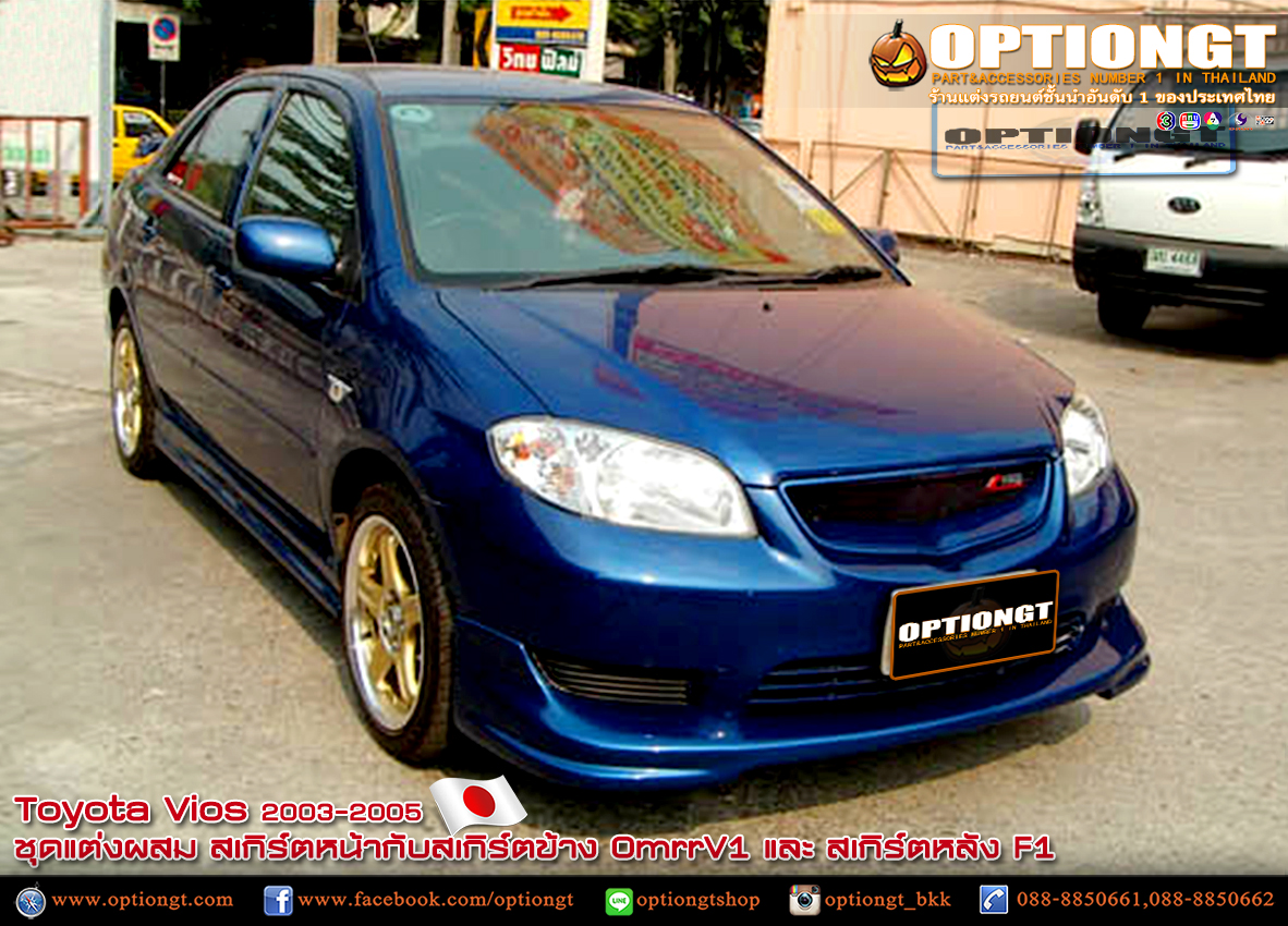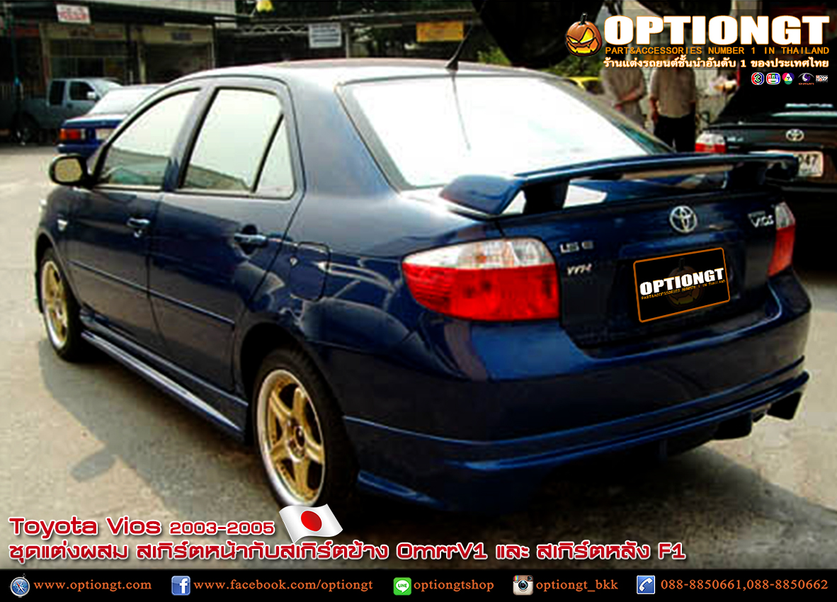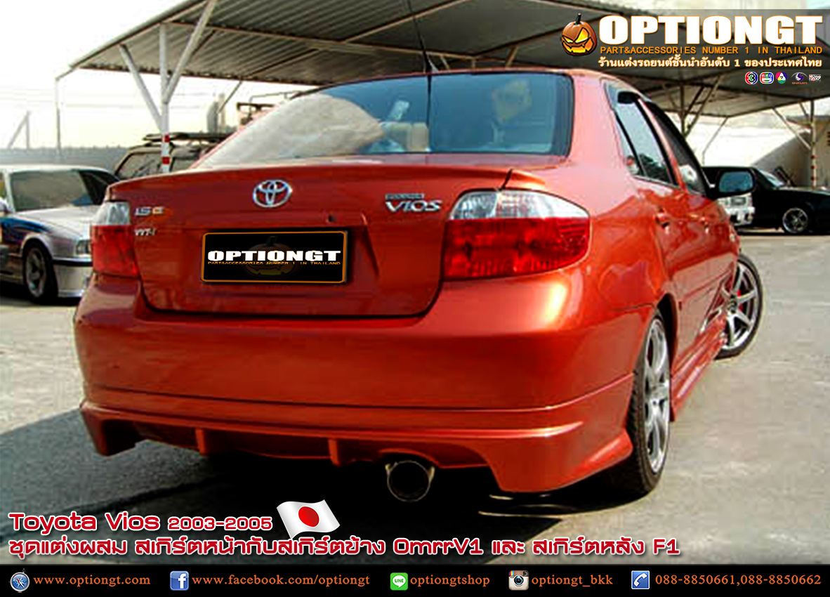 Toyota Vios 2003-2005 ชุดแต่ง OmrrV1สเกิร์ตหน้ากับสเกิร์ตข้างและสเกิร์ตหลัง F1