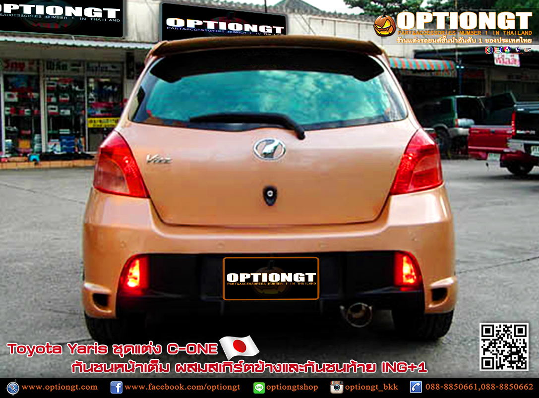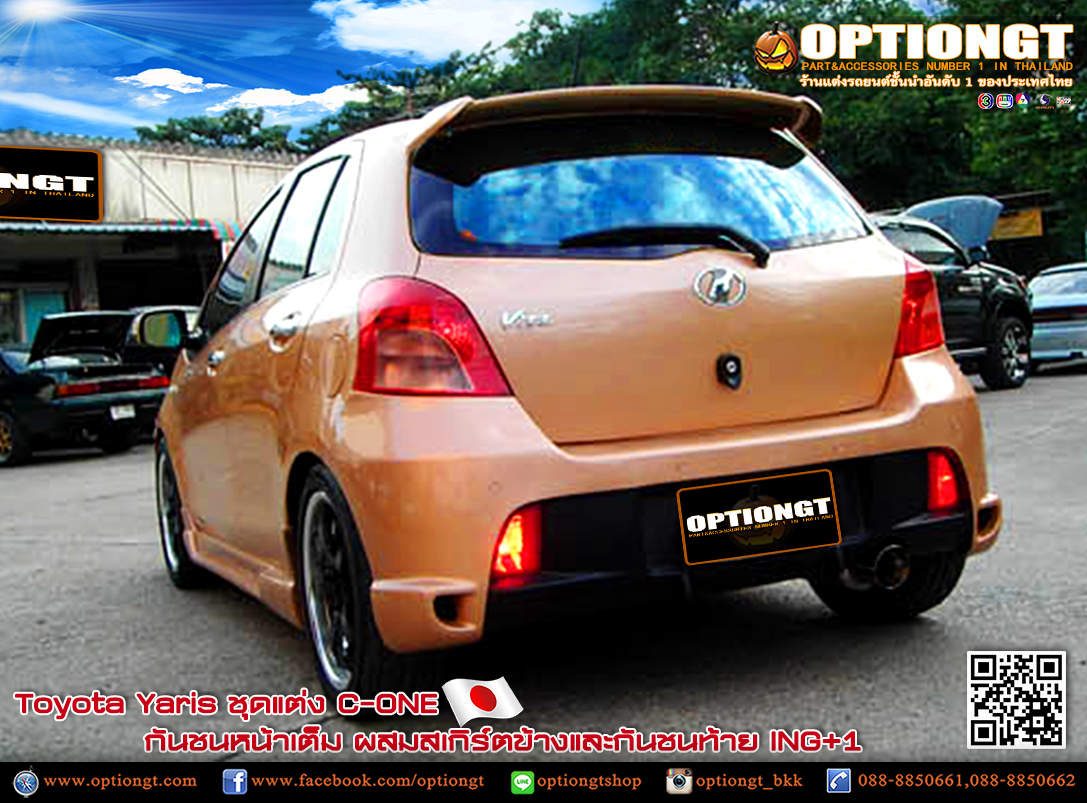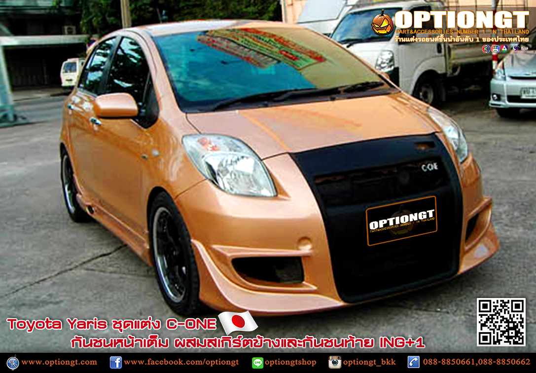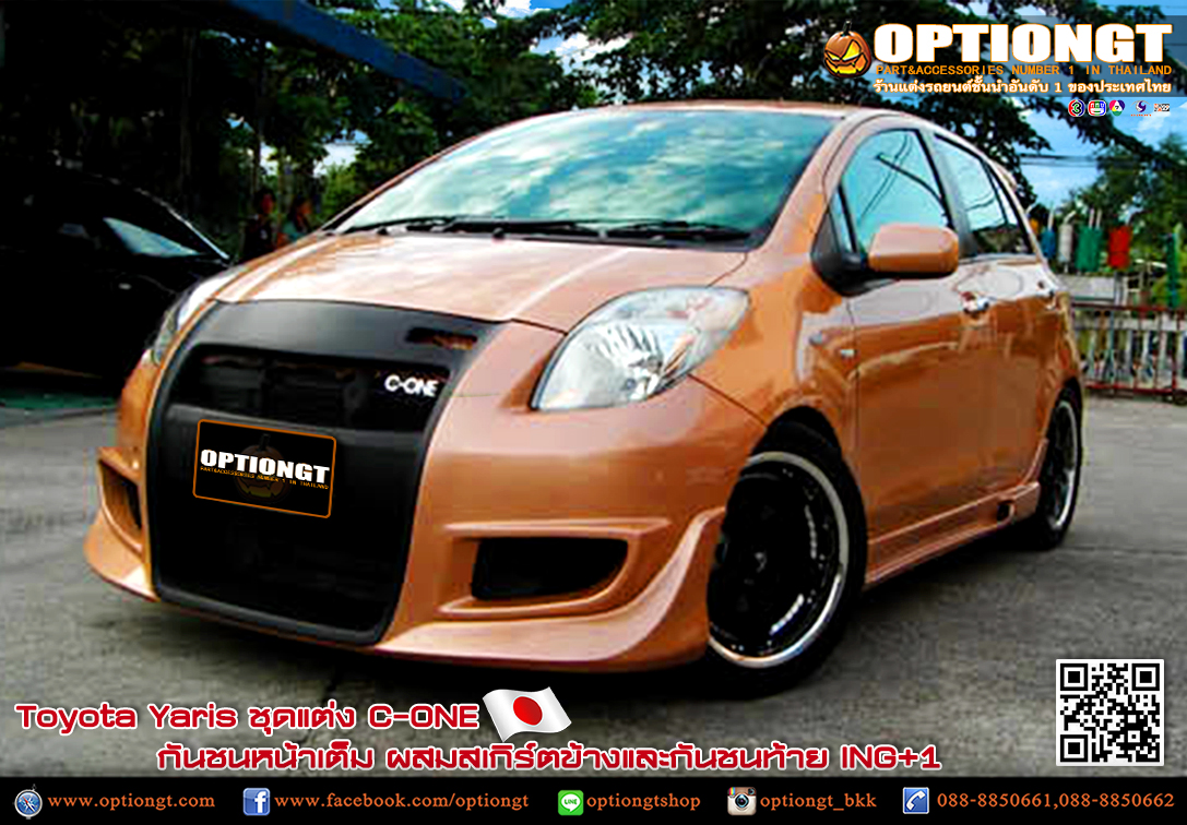 Toyota Yaris ชุดแต่ง C-ONE กันชนหน้าเต็มผสมสเกิร์ตข้างและกันชนท้าย ING+1